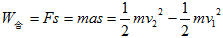 在牛顿第二定律 F=ma 两端同乘以合外力方向上的位移s,即可得