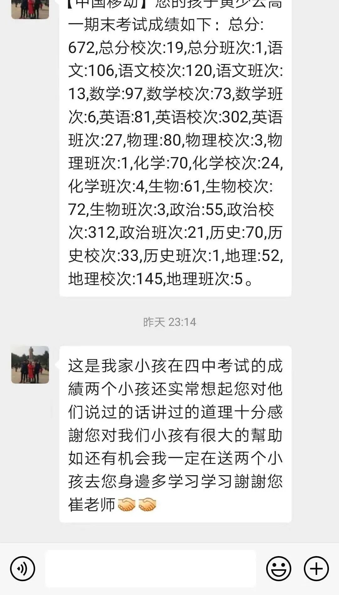 第二点就是经常开班会总结,培养集体意识,多强调集体荣誉。在班级里面形成一种向上的氛围。我们班赵凡棨,来复读的时候,家长告诉我,只要稳稳把他送到中考考场就行,结果在后期的考试中,就考过年级第一,这次中考608分,净增375分。