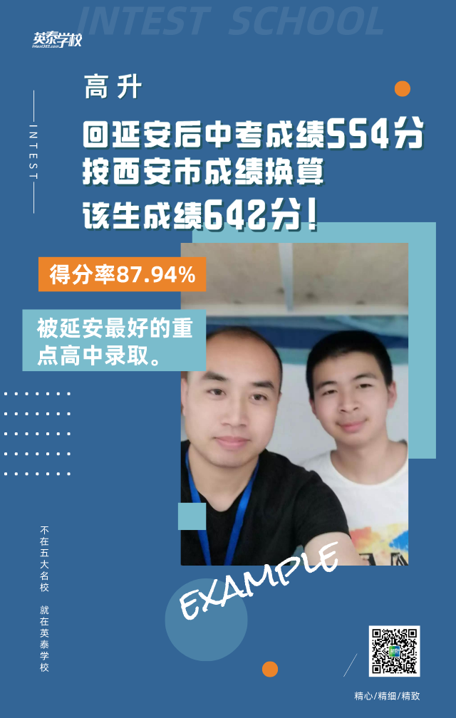 第三点是为学生制定学习计划,我们班高升同学,一直是年级第一,因为家里原因,中途回原学校上了一段时间,再回来测试,已经和班级学生有了差距。孩子的学习积极性就被打击到了,我与代课老师通过精准测试,为他设计复习方法,这次回延安后中考成绩554分(延安当地满分630分)得分率87.94%,按西安市成绩换算该生成绩642分,被延安最好的重点高中延安市实验中学录取。