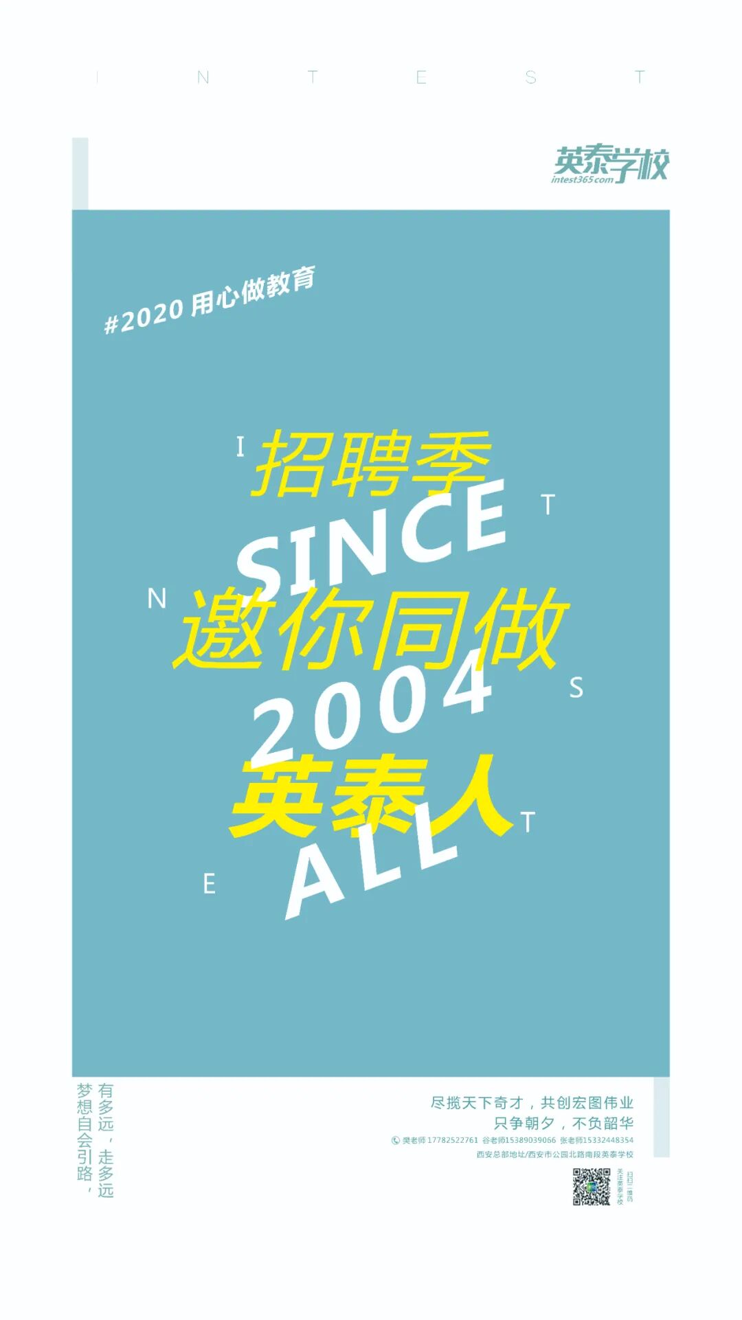 应聘地址:西安市新城区迎祥南坊南段西安英泰学校三期一楼第一办公室