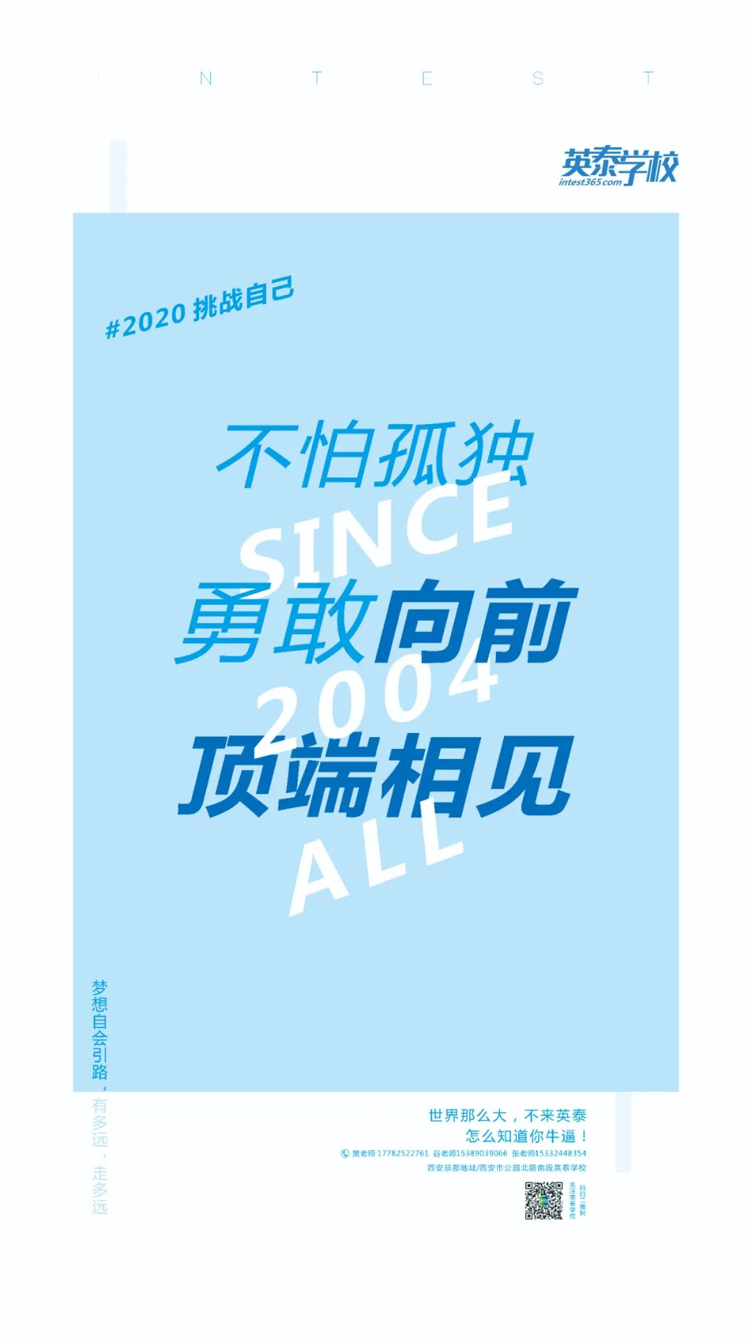 西安英泰学校成立于2004年,是一所政府部门批准成立,具有独立招生资格的学校。拥有西安市公园北路校区、南三环校区、高新校区、滨河校区四大校区,共占地160亩,可容纳6000名学生就读,有塑胶跑道、图书馆、有机餐厅,宿舍干湿分离卫生间、智慧教室、中央空调等顶级校园设施,打造西北地区“宜学、宜居”示范旗舰校。